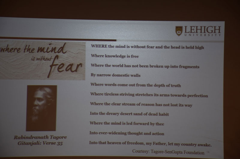 A talk on “transporting and transplanting Tagore in the midst of global masses” by Prof. Arup Sengupta of Lehigh University.